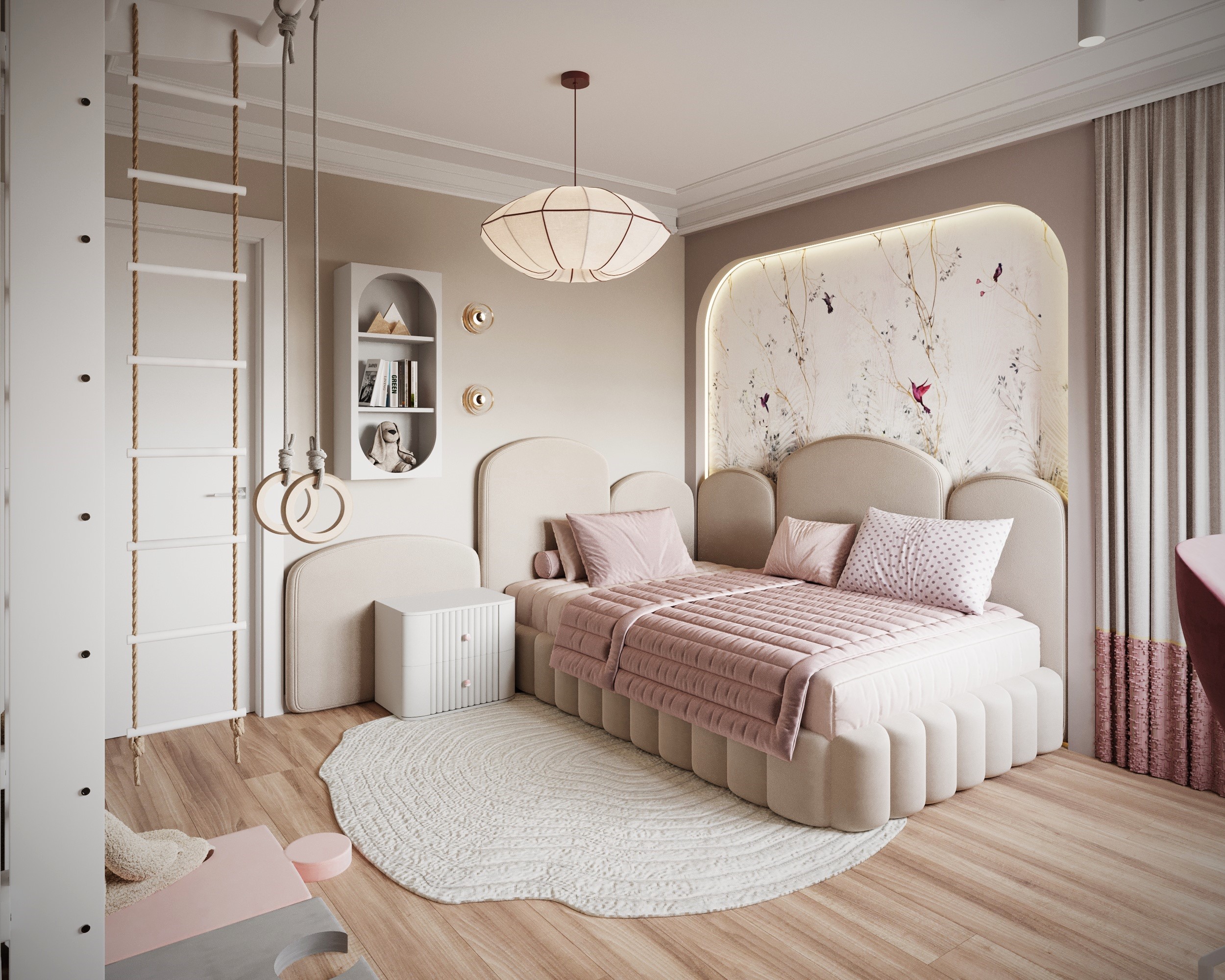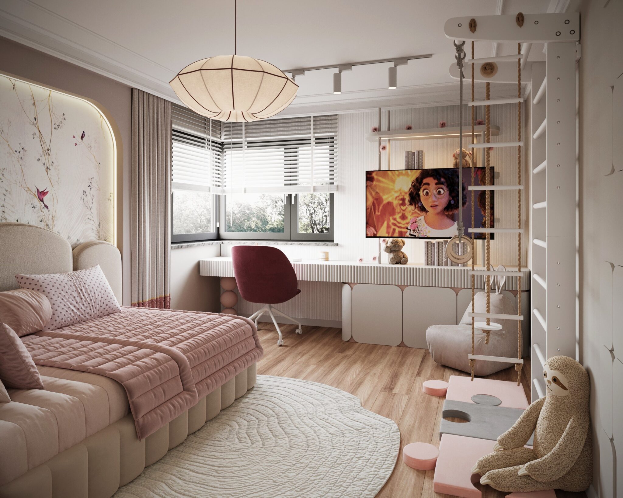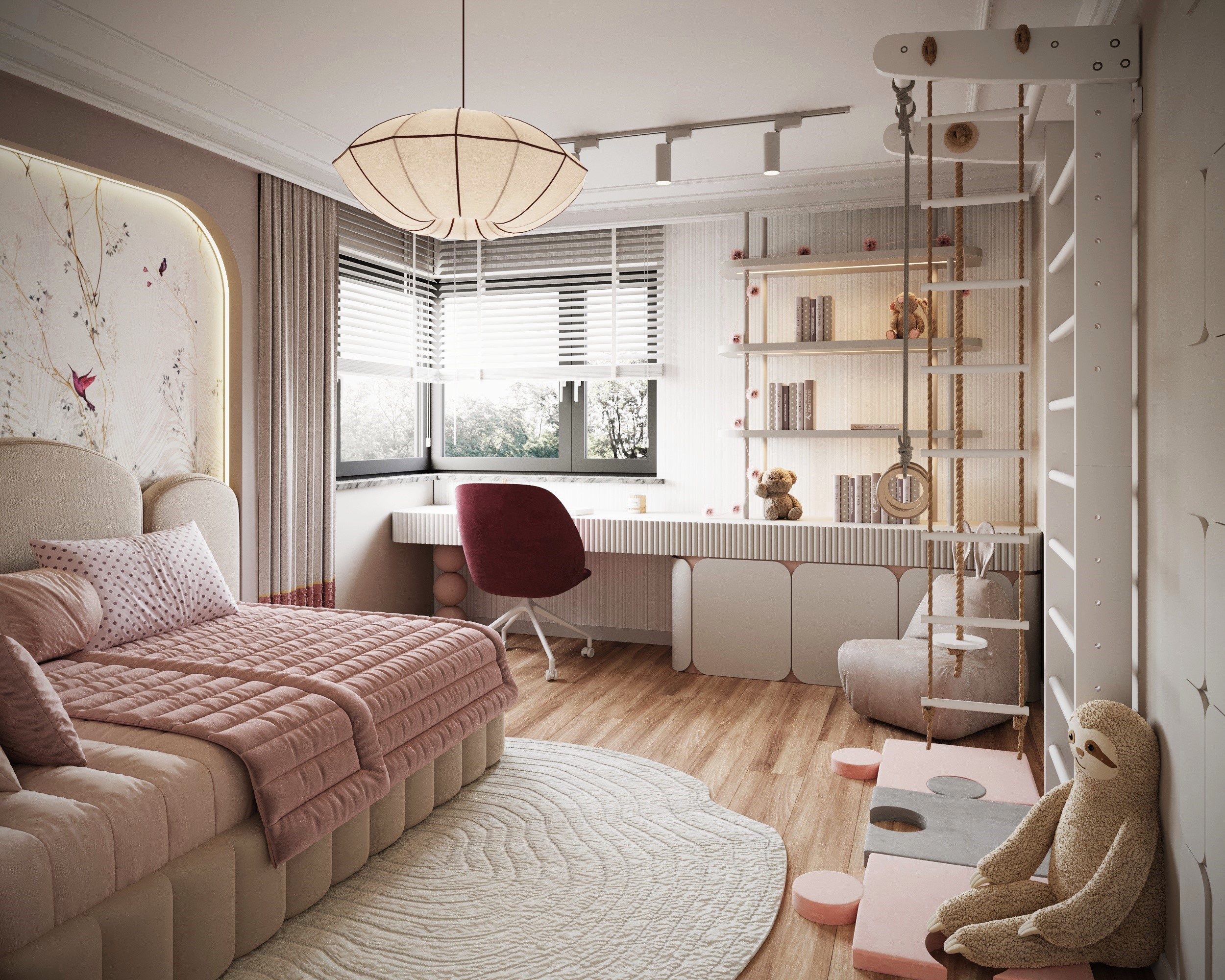Projekty pokoi 3 dziewczynek w wieku przedszkolnym. Pokój Helenki w odcieniach beżu łączy ciepło neutralnych tonów z urokiem pastelowych akcentów. Pokój bliźniaczek to przestrzeń wypełniona ciepłymi odcieniami różu i beżu, z kącikiem do kreatywnych zabaw, a także miejscem do nauki.