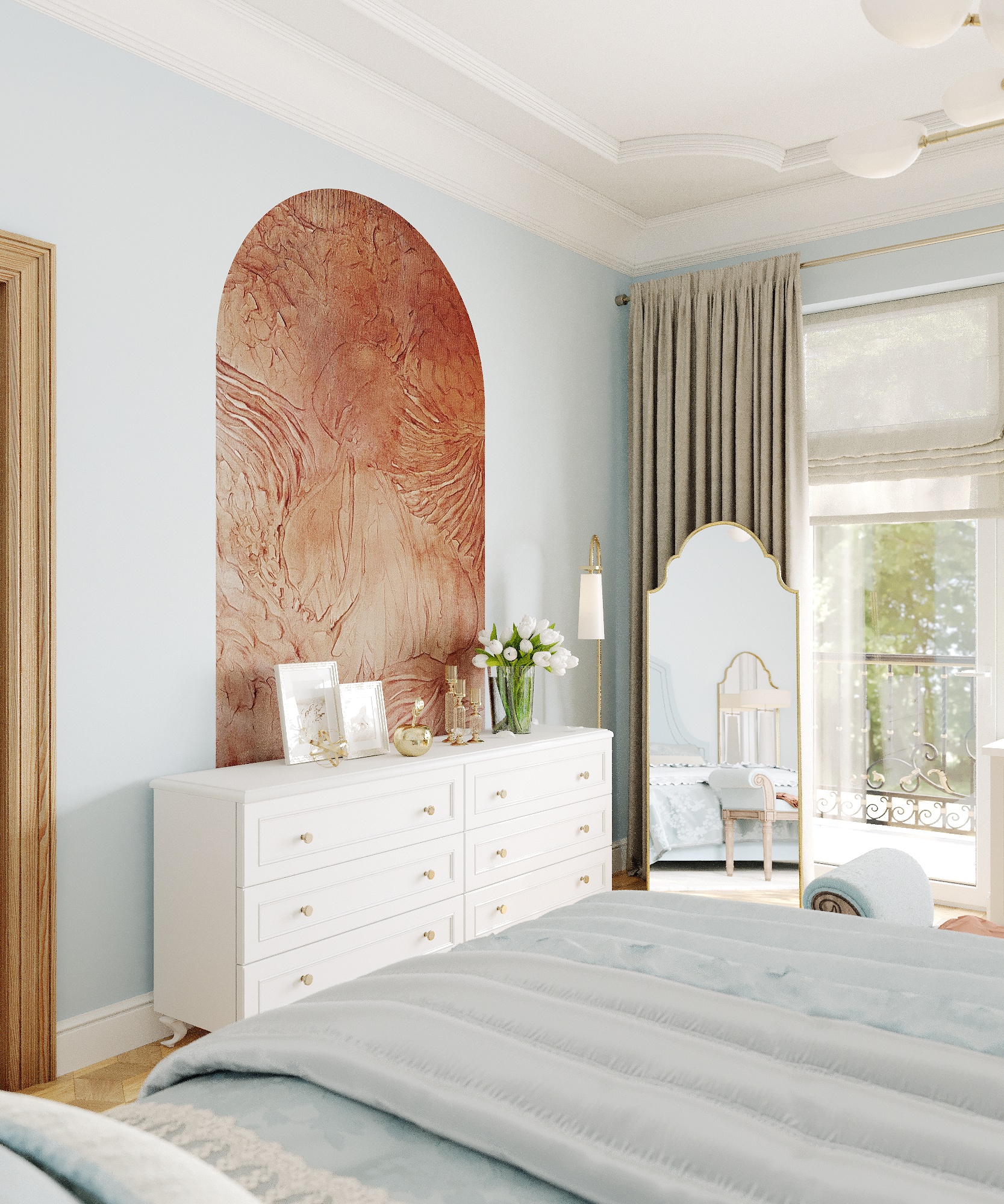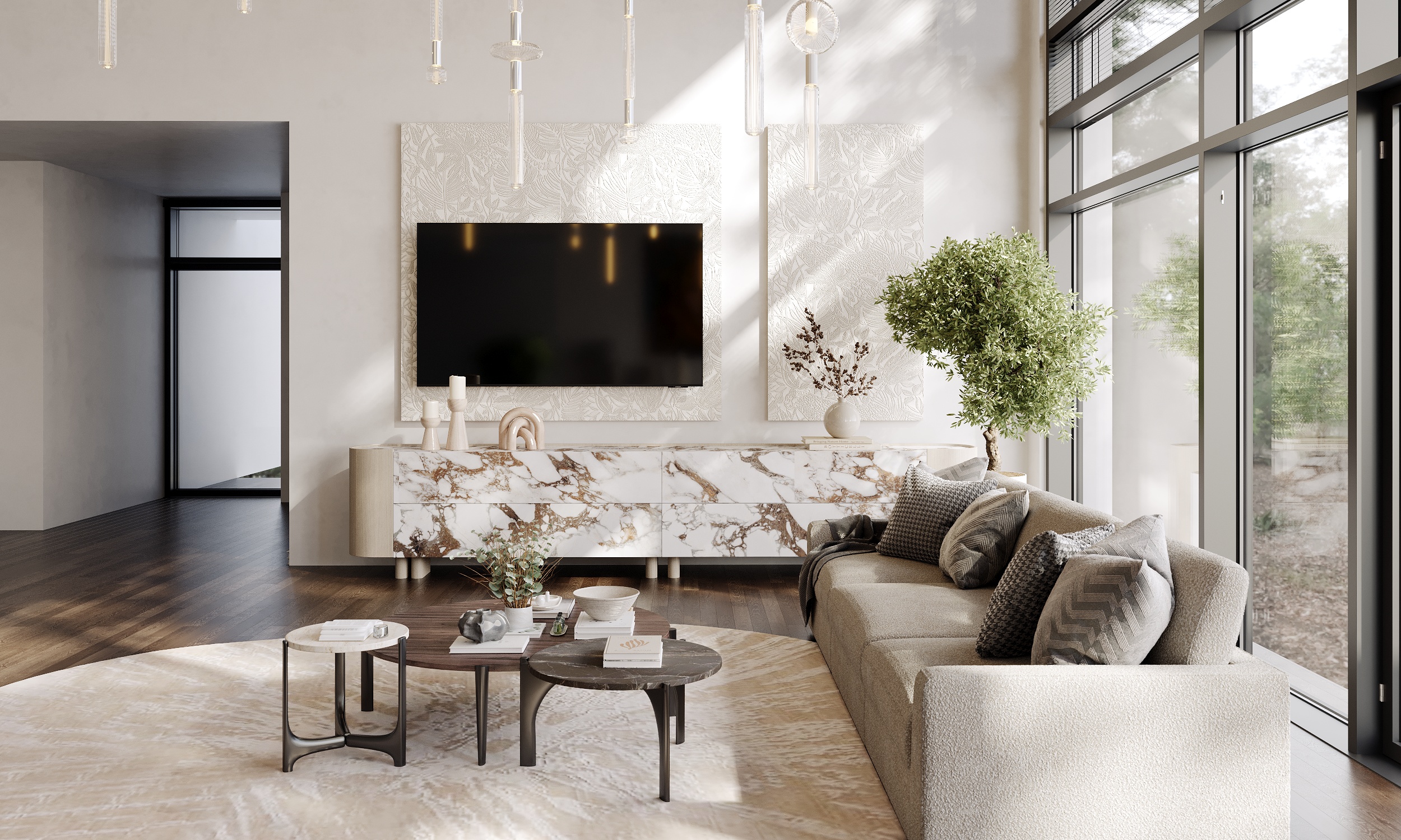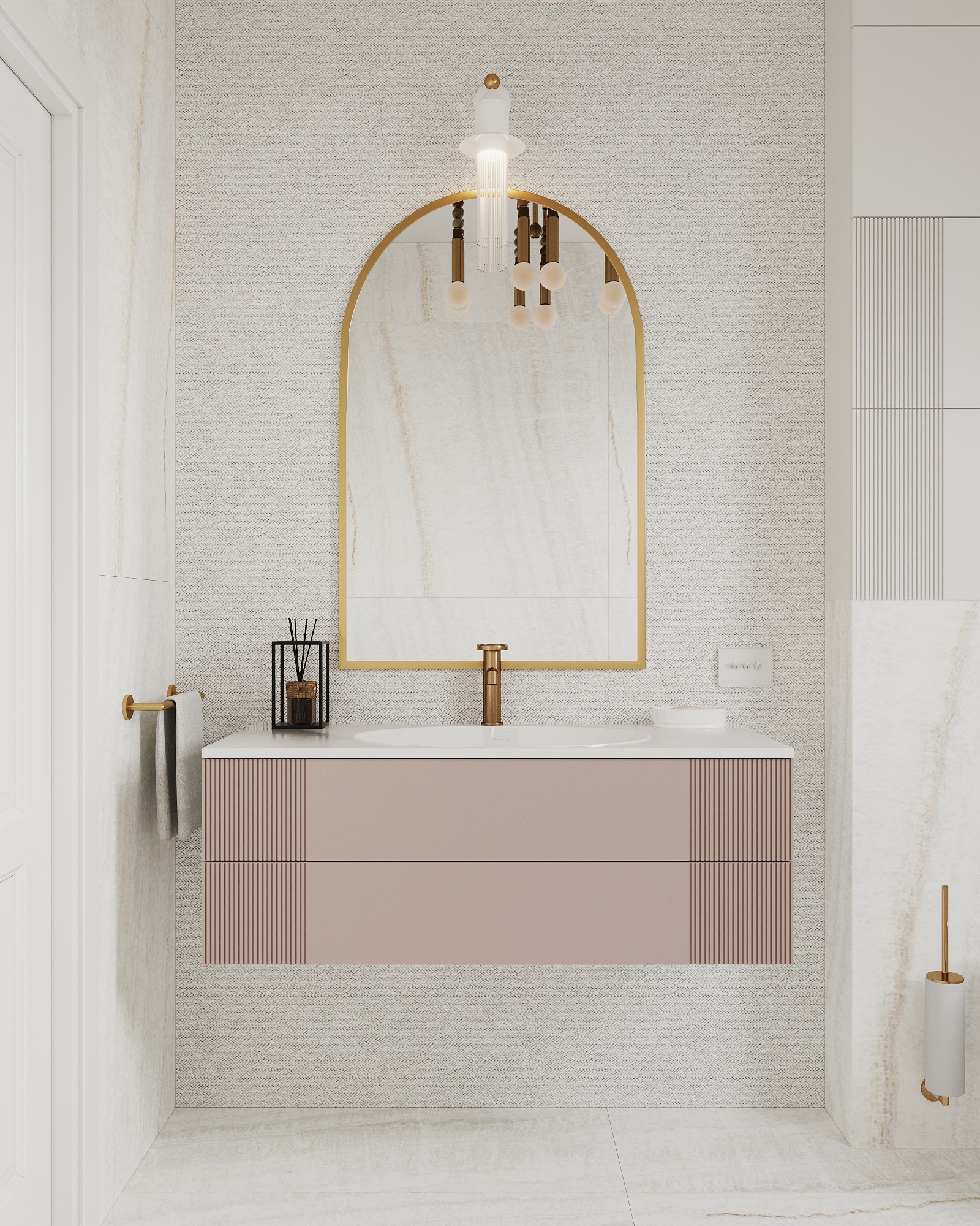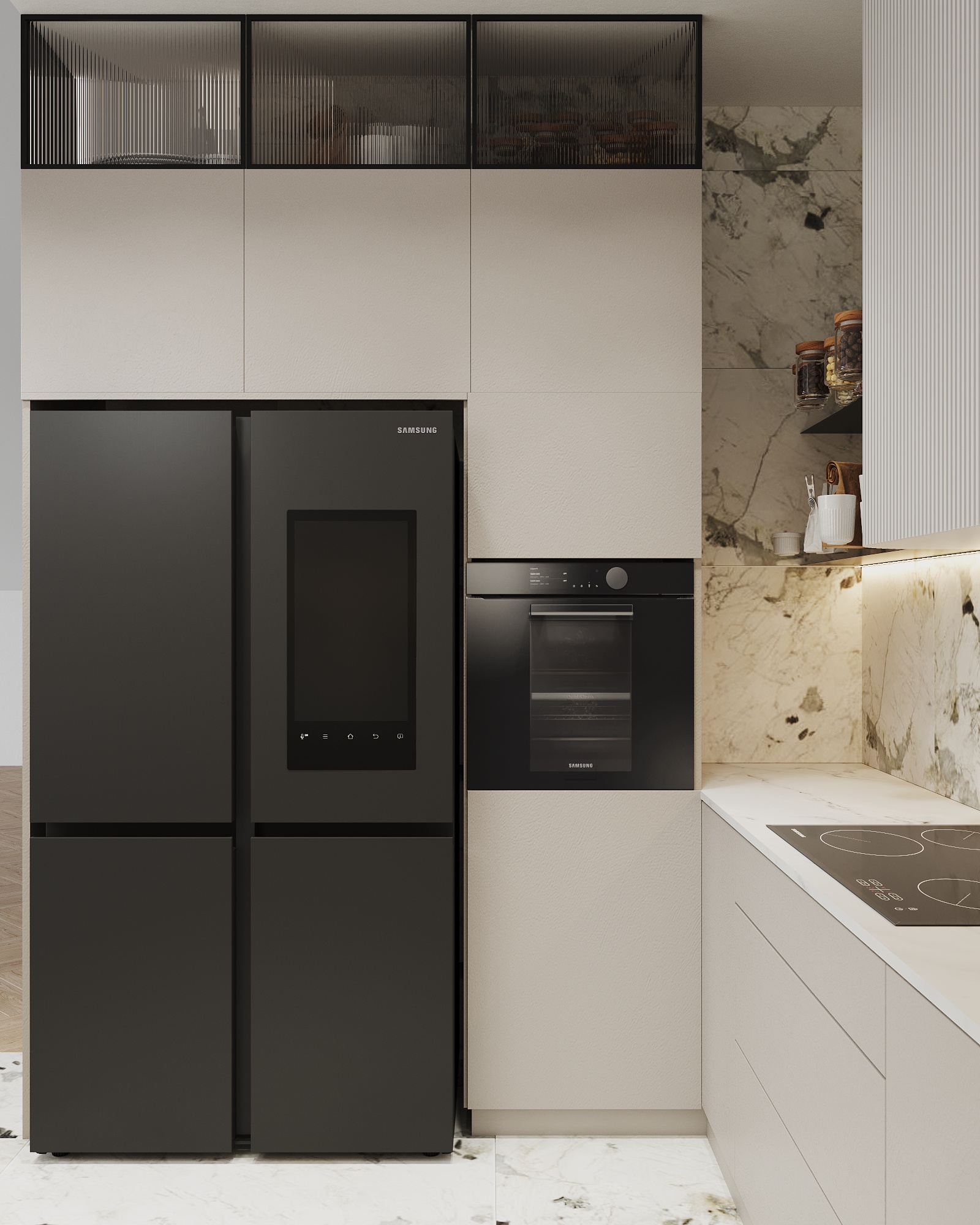 Część mieszkalna, w której narożna kaszmirowa kuchnia połączona jest z jadalnią i salonem. Strefa dziecięca to pokój chłopca i bawialnia z piętrowym łóżkiem