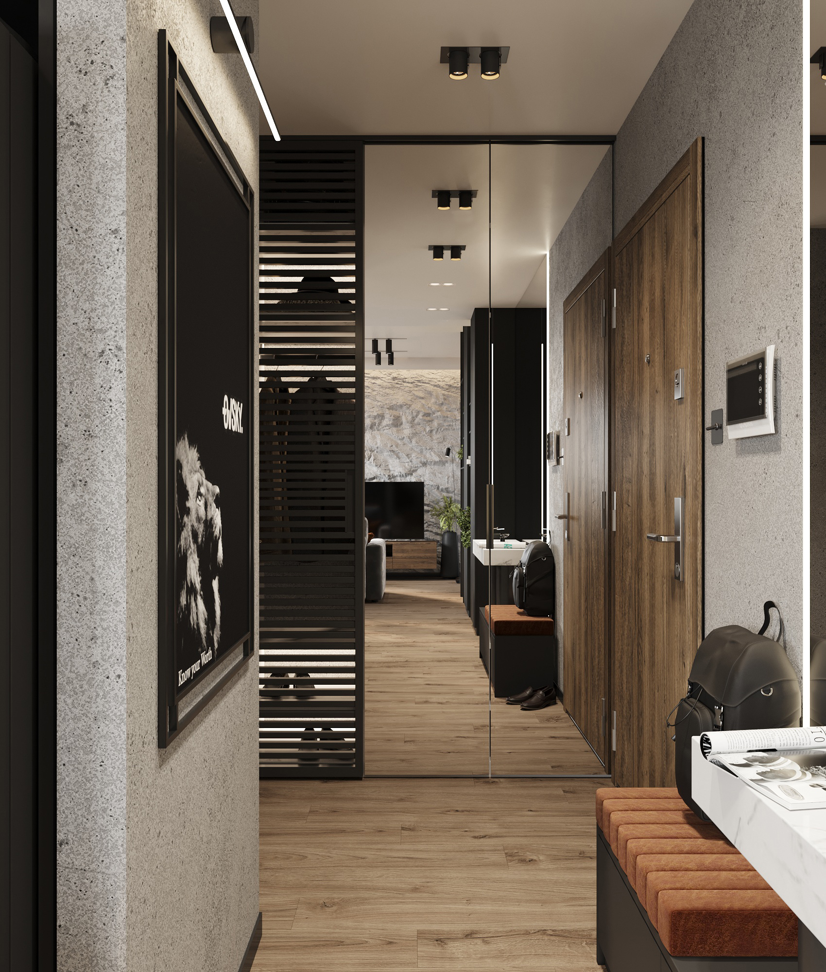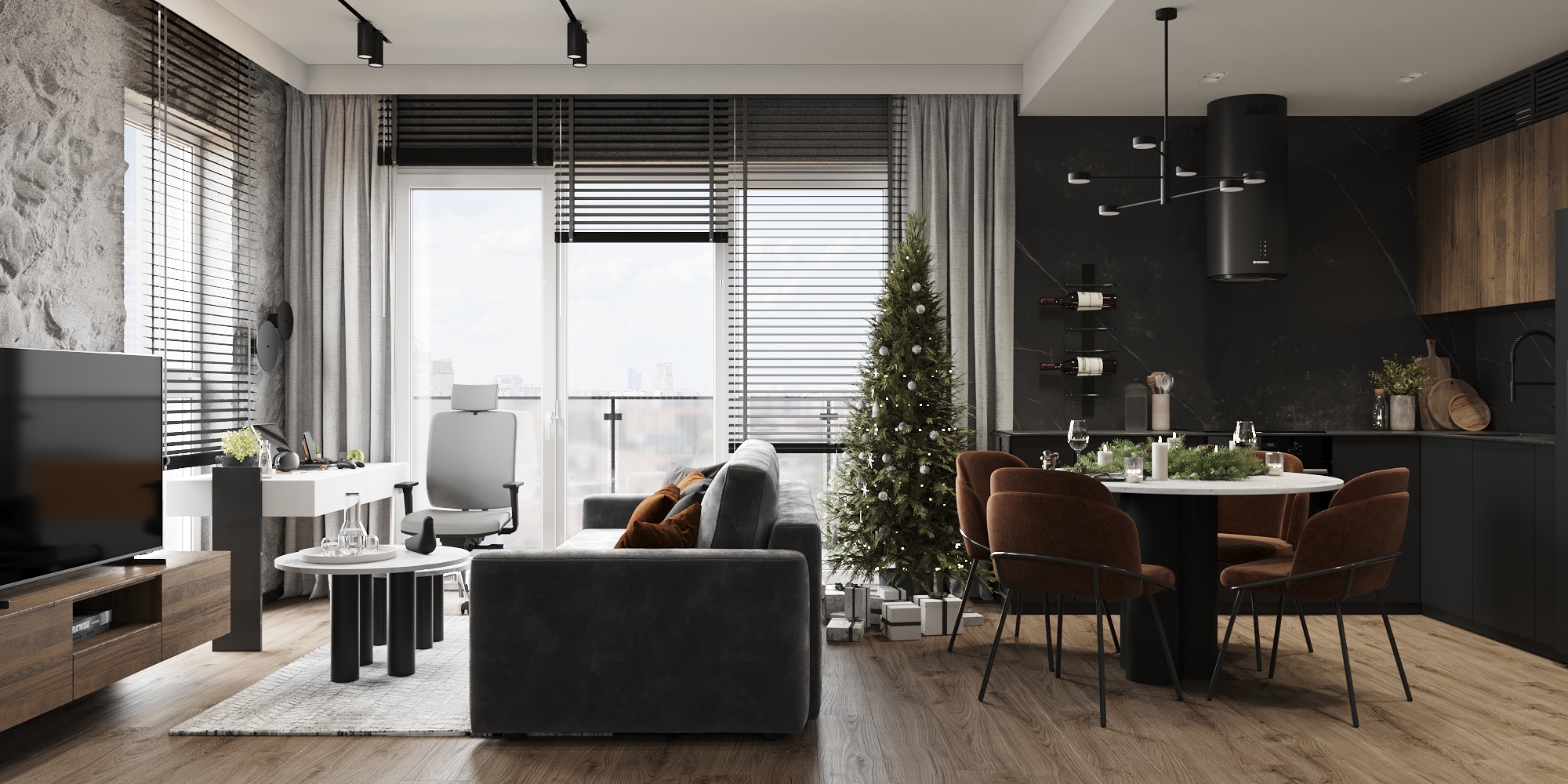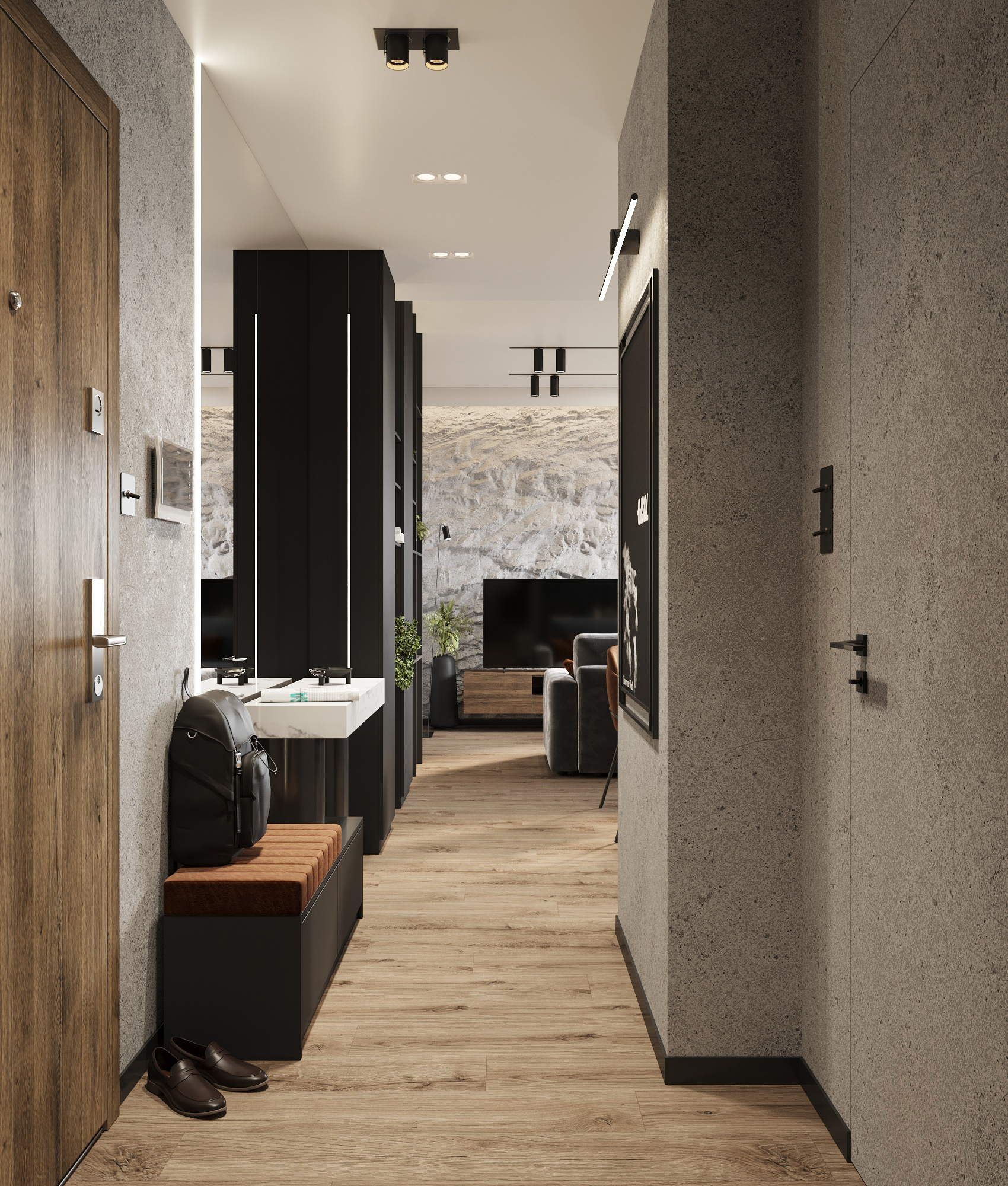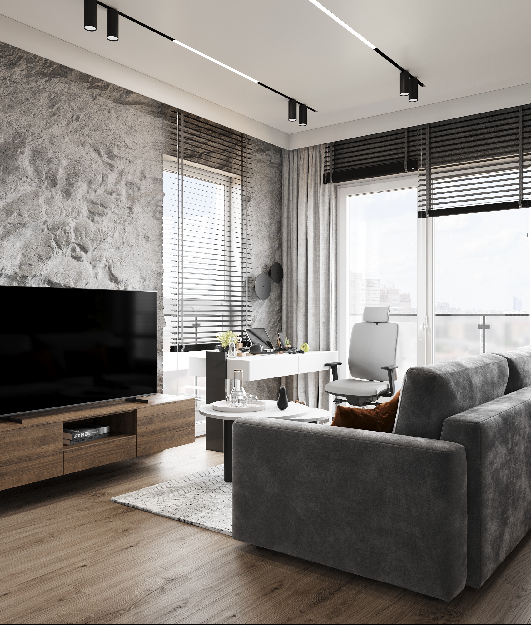 32 metrowa kawalerka w Poznaniu dla młodego przedsiębiorcy. To męskie wnętrze w minimalistycznej odsłonie łączące design z funkcjonalnością