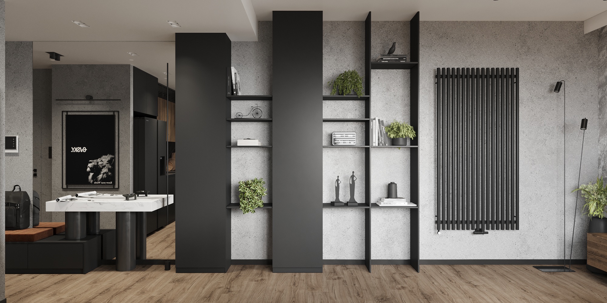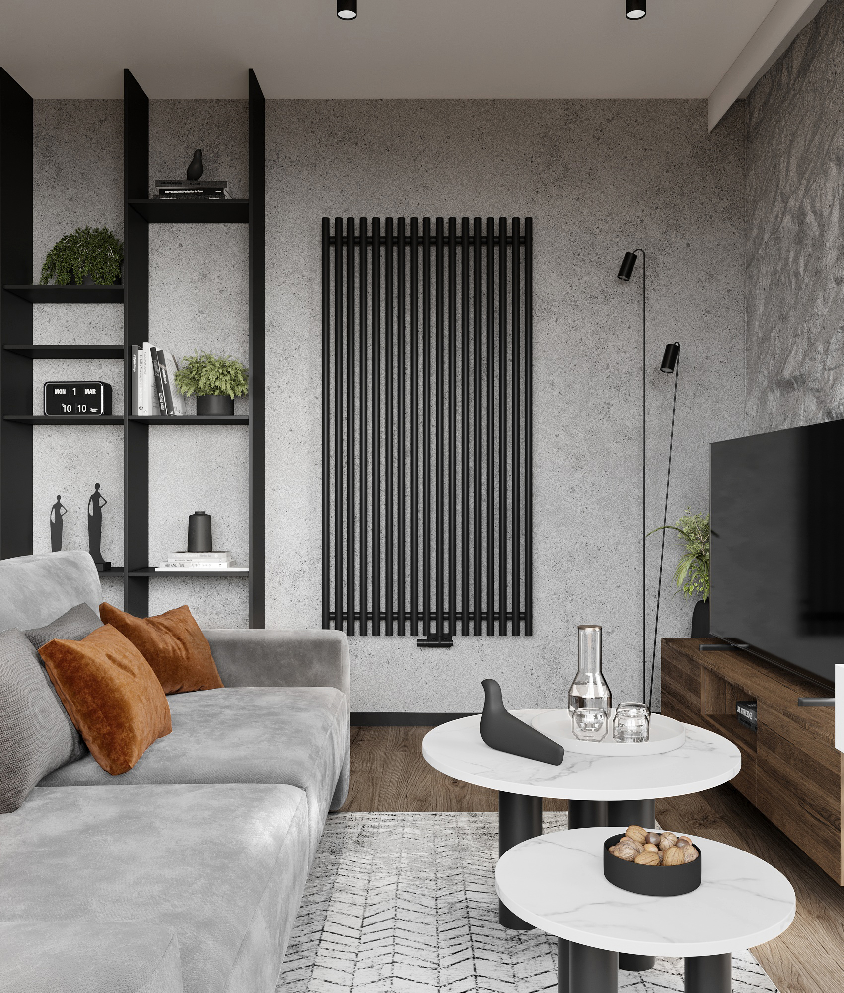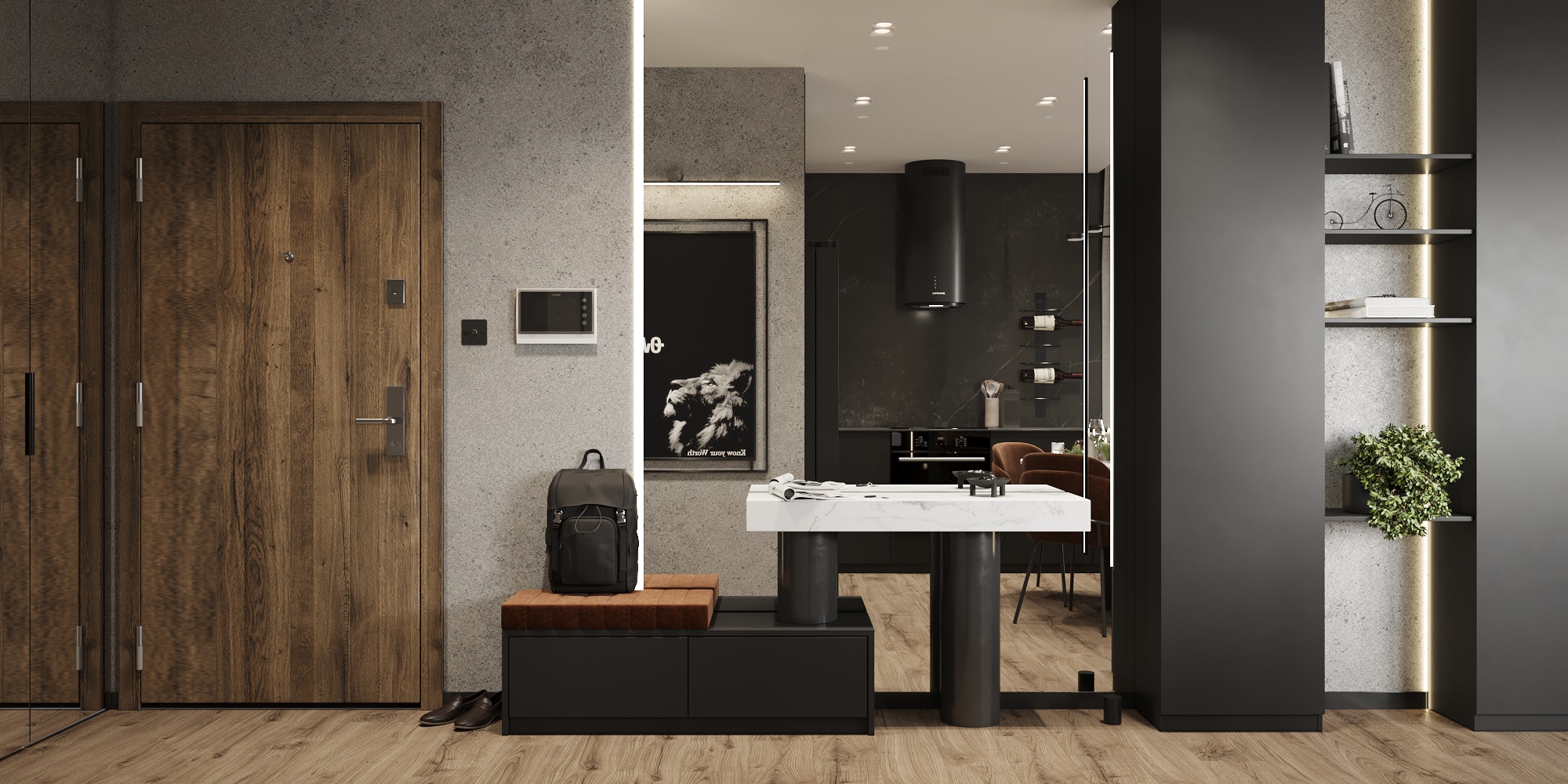 32 metrowa kawalerka w Poznaniu dla młodego przedsiębiorcy. To męskie wnętrze w minimalistycznej odsłonie łączące design z funkcjonalnością
