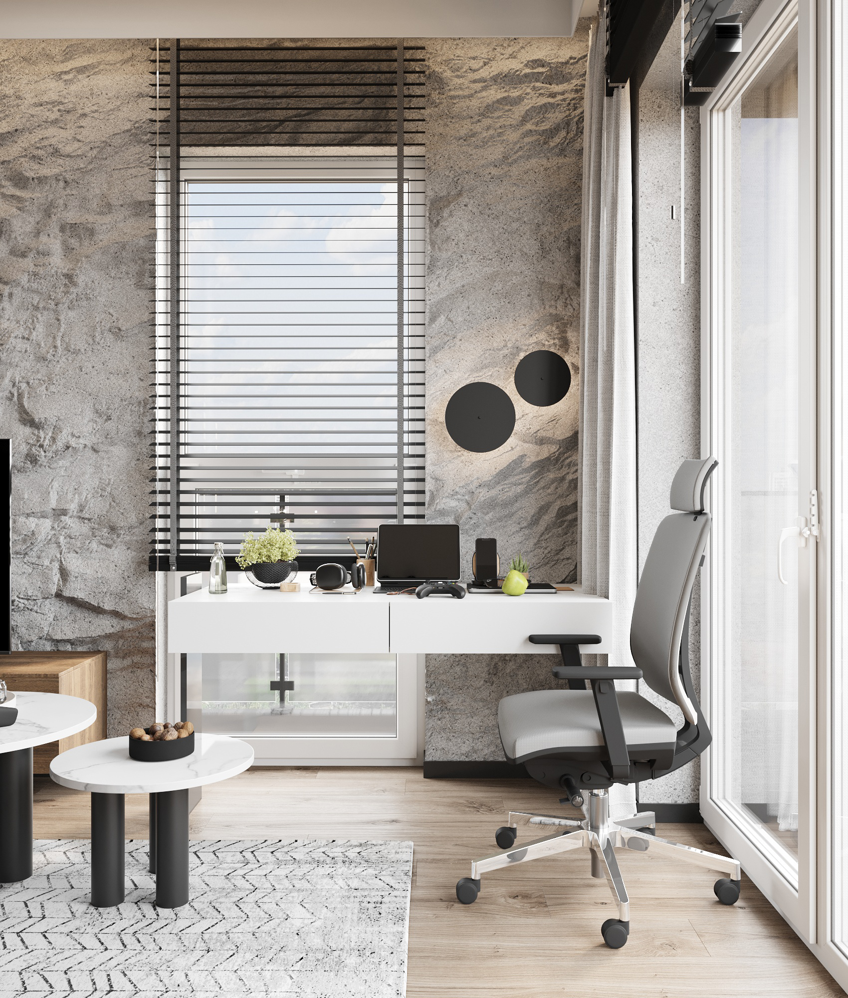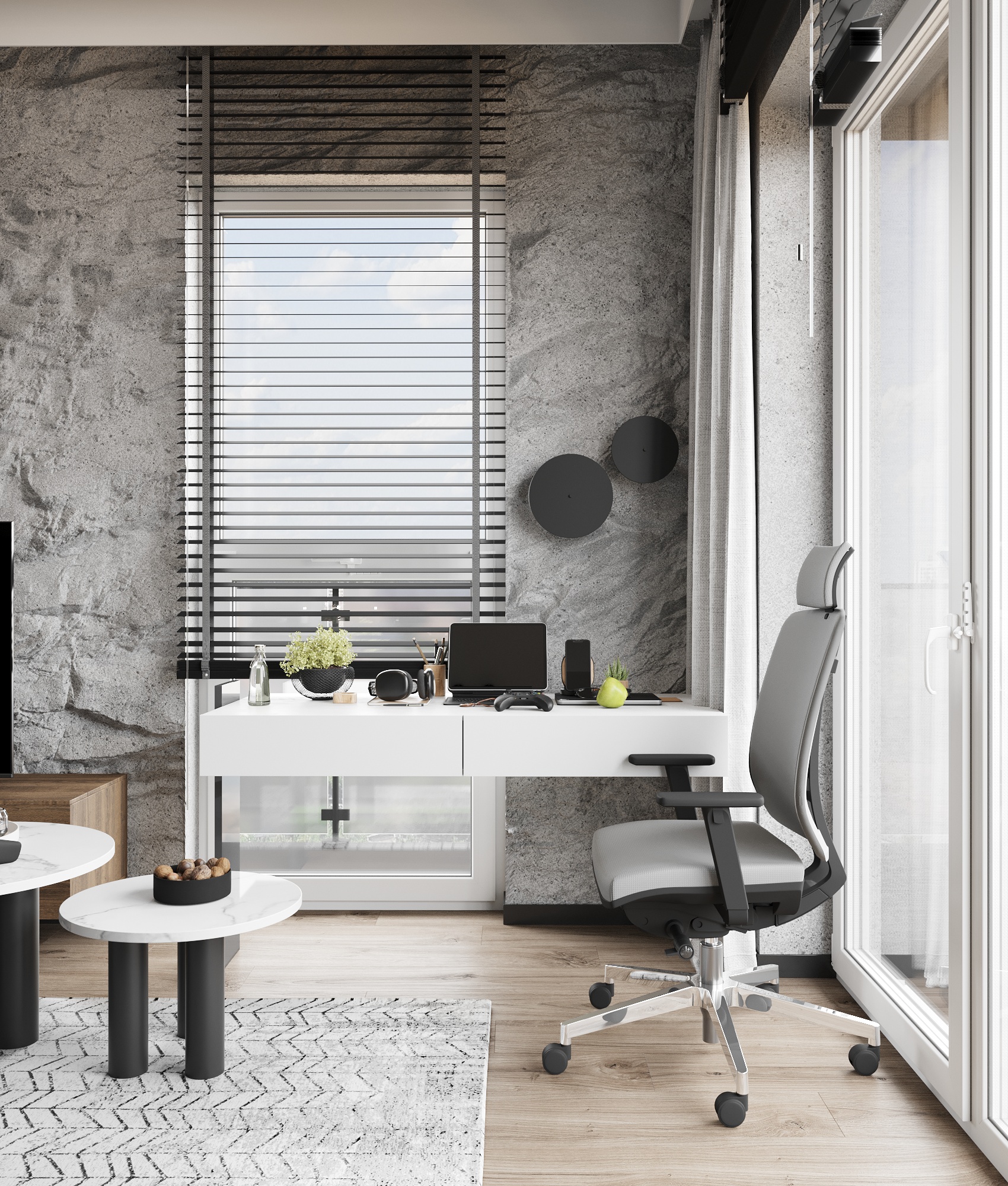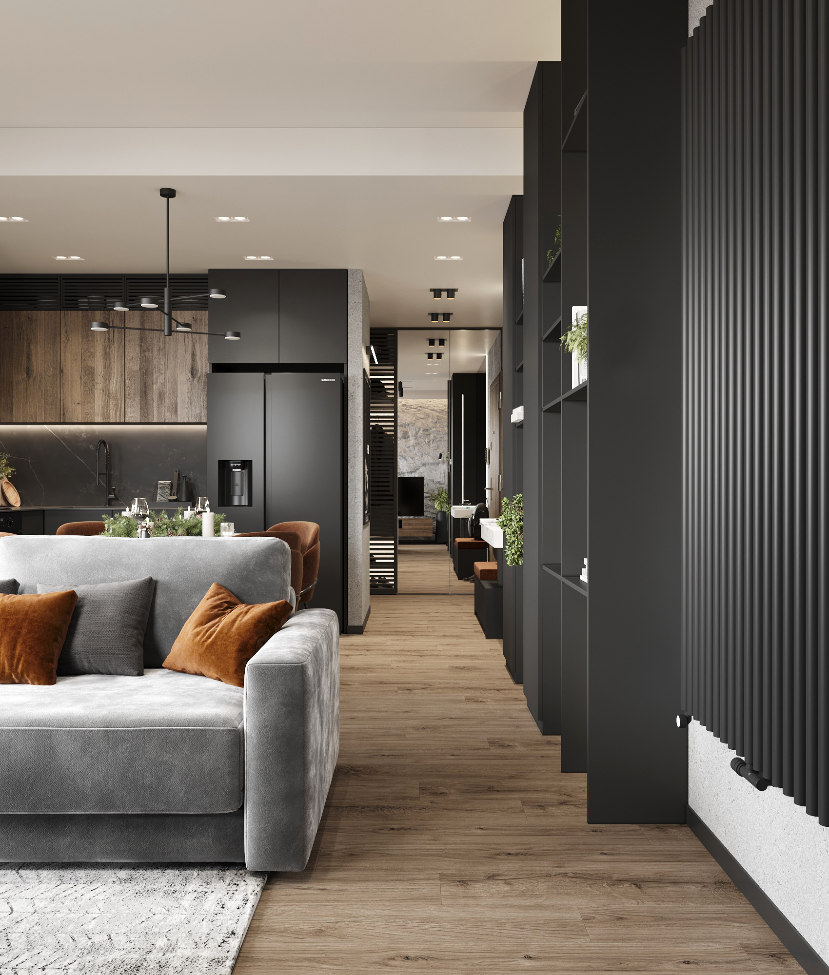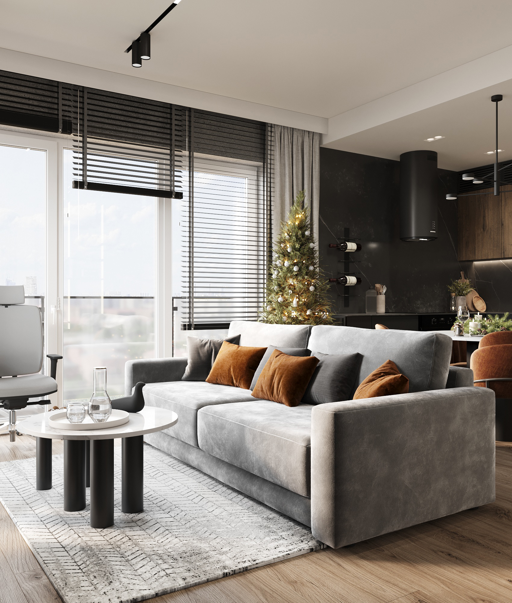 32 metrowa kawalerka w Poznaniu dla młodego przedsiębiorcy. To męskie wnętrze w minimalistycznej odsłonie łączące design z funkcjonalnością